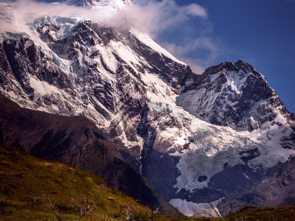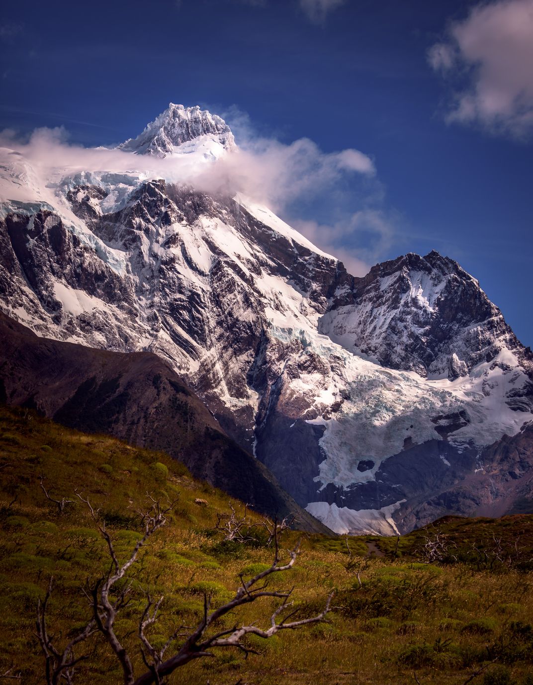 Cerro Paine Grande the lesser known but much larger relative to Torres Del Paine and Cuernos Del Paine. This peak has only been summited four times. Ever. In the 8 days I was in Patagonia we seldom saw the top. The icy crown it wears and very alpine nature of the its sheer cliffs and large glaciers as it towers over the surrounding landscape gives one a sense of this peaks rugged and extreme nature.