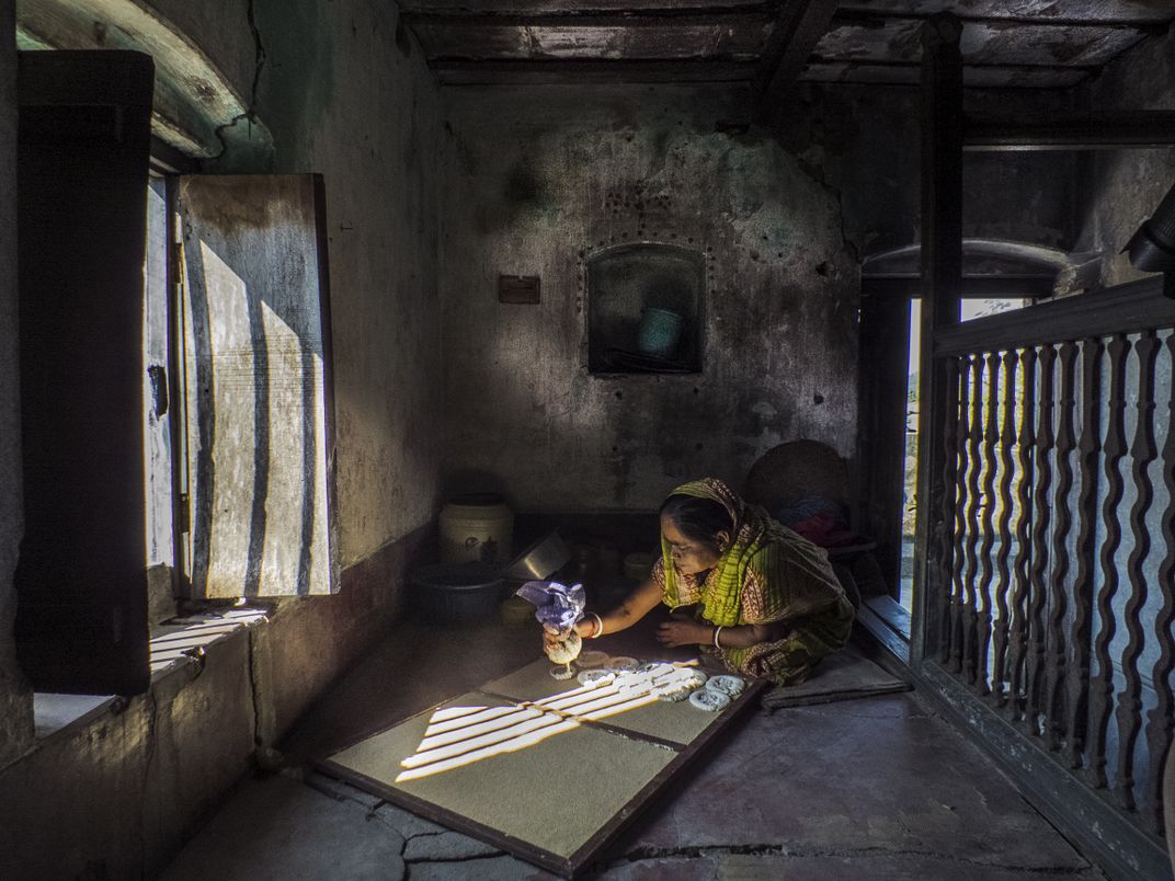 Goyna bori-sundried lentil paste designed like ornaments ready to roast food product , completely homemade item. the flavour is attached with the spirit and skill of the ladies of West Bengal.During the automation era this scene is rarely found.