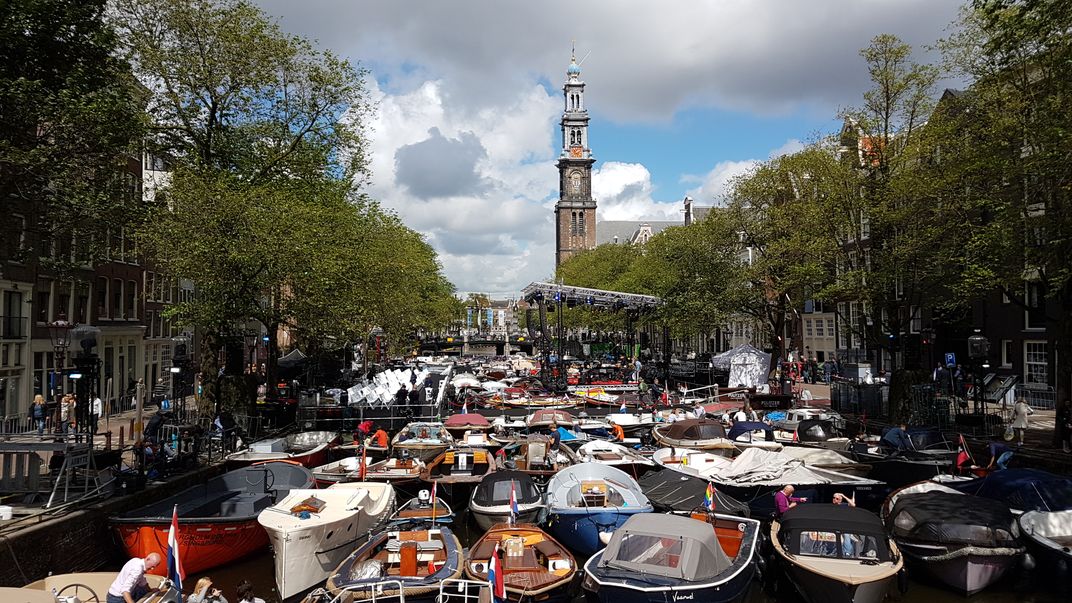 Every year boats get together to watch classical music being played on the Grachten of Amsterdam
