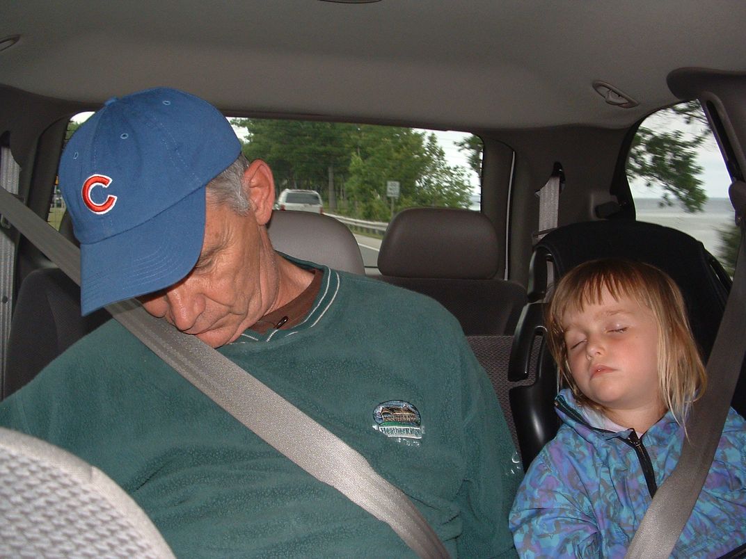 Grandfather and granddaughter sleeping
