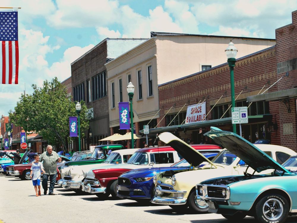 I was taking photographs on the street and I captured this older man and his grandson with his arm around him...with the U.S. flag and old cars, parked on Main Street America.