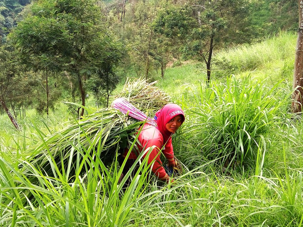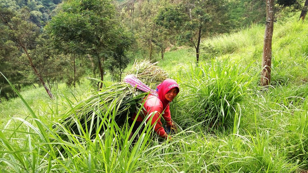 Around Mt. Bromo, as part of volcanic area, is lush green with vegetation. Local people plant "elephant" grass to feed their cattle. Because of mountainous area, sometimes they have to climb down and up for the grass.