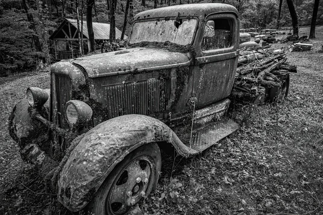 While on a photo expedition through the Great Smoky Mountains National Park, we made a stop at Ely's Mill, just outside of the park in Gatlinsburg, Tennessee. It is a fascinating place because of all the original buildings and equipment left over from when the area was a working farming community. This rusted out pickup appealed to me, and I had to shoot it in black and white.
