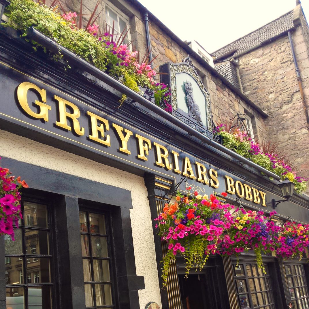 A view of the Greyfriars Bobby Pub across from the popular statue of The Greyfriars Bobby.