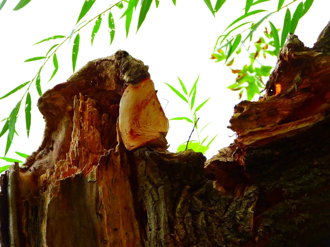 Do You See What I See atop trunk of Weeping Willow Tree? The formations of nature can set imaginations free. Do you see a Grizzly bear, his paw lifted by his face, chewing on a fungus, as mad wolf stares him down? This is what I saw above when standing on the ground! Formations are remarkable and fun for discovering art designed by nature. Photo shop defined and made more sharply what I saw in the trunk portion of a weeping willow tree. The limbs had fallen over due to a tornado several years ago. The tree over 100 years old was beautiful when standing tall in its glory but even more awesome to find what was left behind. Since then the design in the trunk formation has faded with age and more storms. I am thankful I shot this formation when visible for the eye to see.