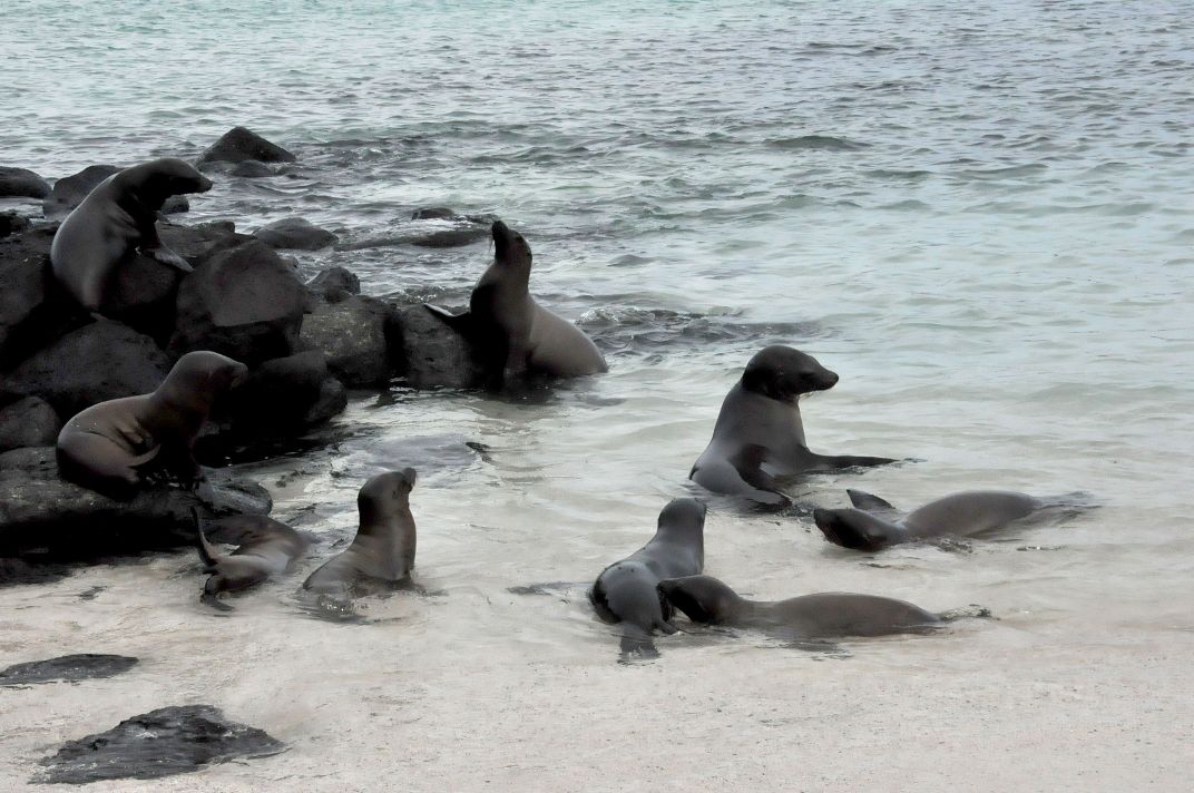Seal leisurely enjoying the beach at Floreana Island in Ecuador.