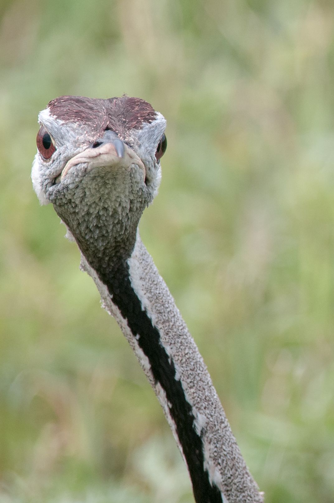 I think this is a Red-crested bustard. The bird stared as if daring us to take it on.