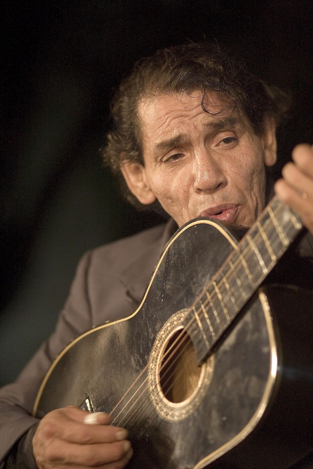Guitarra de Cuidad Mexico: A Street Musician Plays and Sings in the shadows of the night