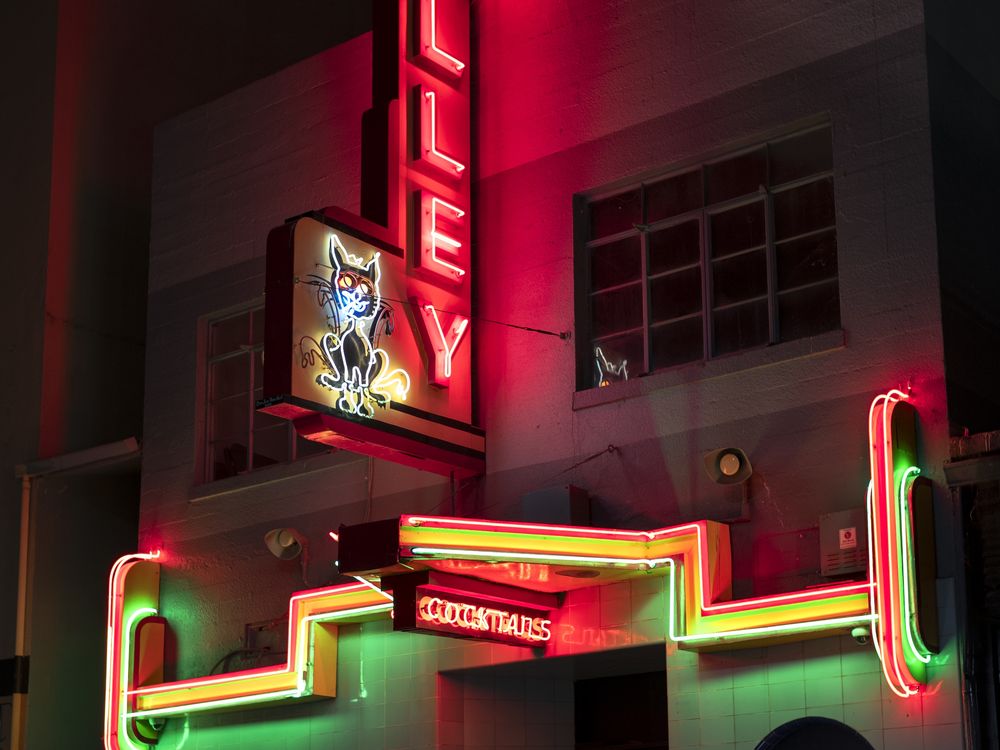 Iconic Bakersfield bar Guthrie's Alley Cat has been in business for 85 years and is still going strong. Its vintage neon sign is a fixture of the downtown nightscape.