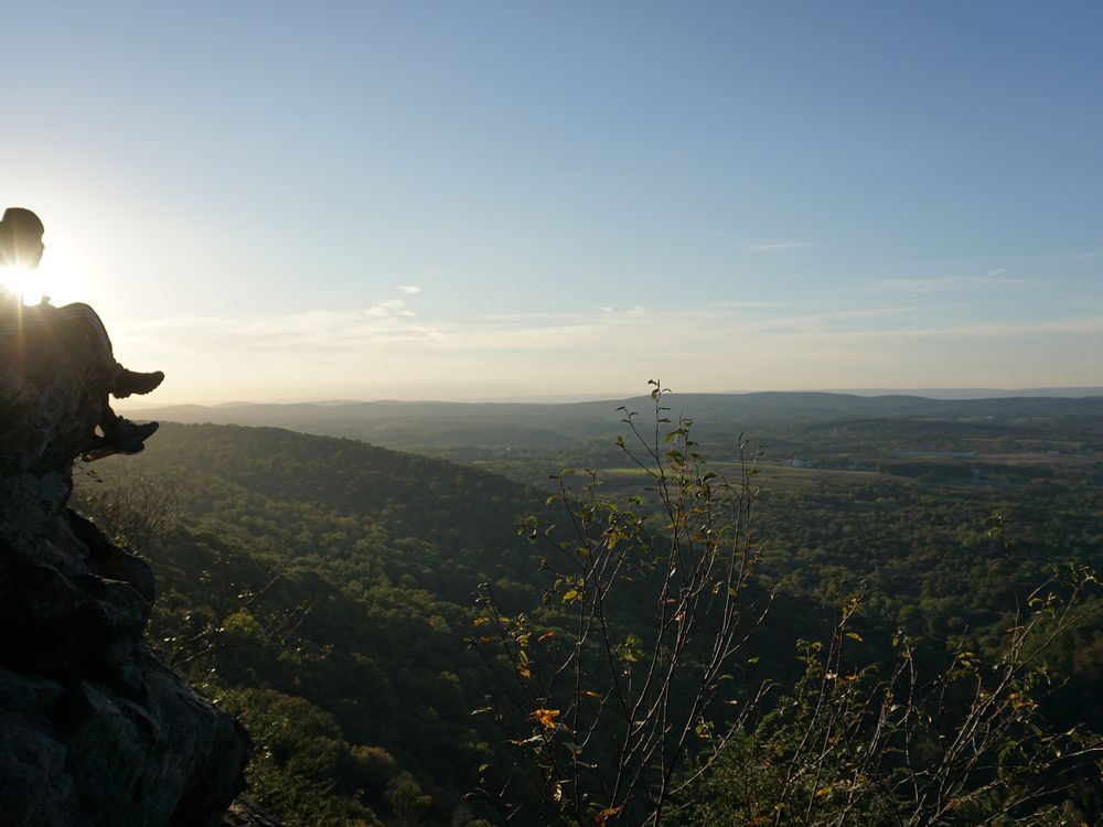 Sitting on the edge of Hawk Rock and looking out at the fields and foothills that spread for miles around us.