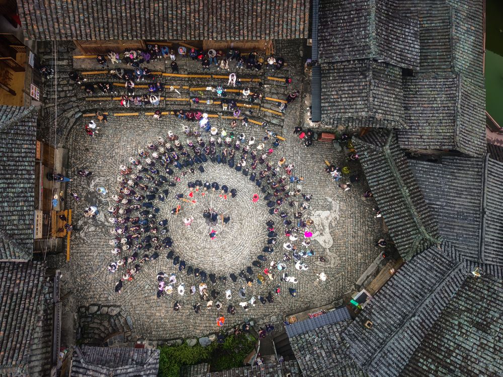 November 2025. During the Miao New Year Festival in Leishan, Qiandongnan, Guizhou Province. From the county town to various townships and villages, people in Leishan County follow Miao customs by singing, dancing, and playing the Lusheng. This scene captures Miao people performing Lusheng dances in Langde Miao Village, Leishan.