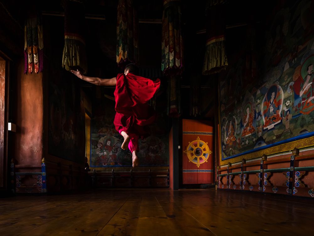 At Jakar Dzong in Bhutan, a monk prepares for the sacred cham dance performed during festivals. In the dim light of the temple, his focused, graceful movements reflect harmony among body, spirit, and tradition. This is more than a dance - it is a living tradition that, through rhythm and color, preserves Bhutan’s spiritual heritage.
