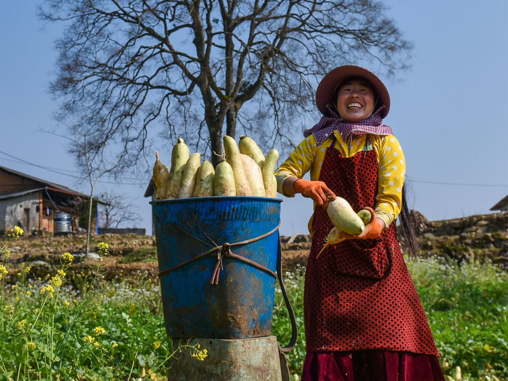 H’mong Farmer normally grow two to three white radish crops a year, including one crop for harvesting before Tết (the Lunar New Year) in Vietnam, when demand for both the fresh and processed varieties is high for making pickles and other dishes for the festival. The photo was taken in Lao xa village where the climate, weather and the ethnic minority like H’mong is the interesting story to attract visitors over the world coming to discover. Lao Xa Village is an ancient village in Sung La Commune, Dong Van District, Ha Giang Province, Vietnam famous for its wild, peaceful beauty and traditional H'Mong house architecture.