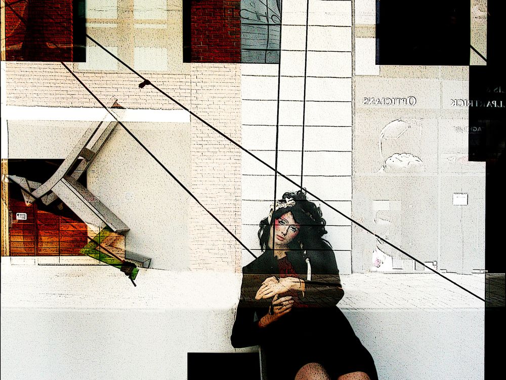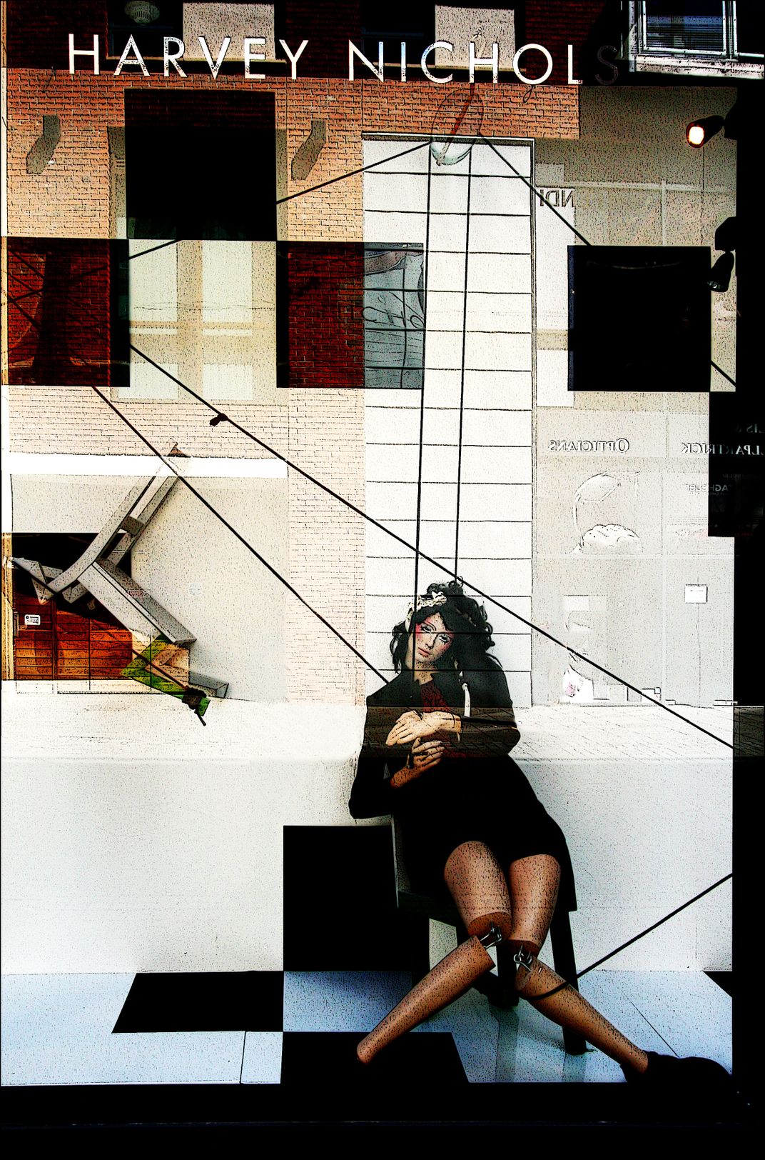 A store window display in Bristol, England. Showing a striking, but bleak, display, of which this mannequin was a part. I was struck by its surreal-ness, as well as its horror-story / sadist quality.