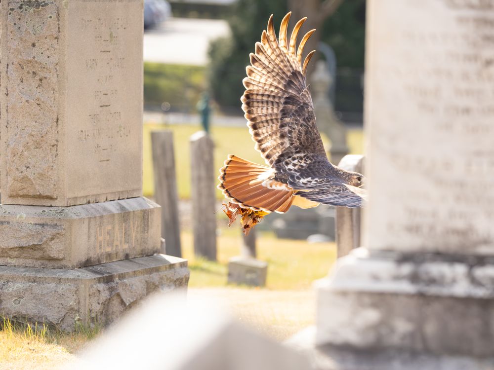 As her wings swoosh and eyes widen she jumps from her perch in a tree, she swoops down and snatches her prey, it’s an almost certain death. This tale of predator and prey, life and death happening in the middle of a graveyard was an opportunity I was blessed to have witnessed.