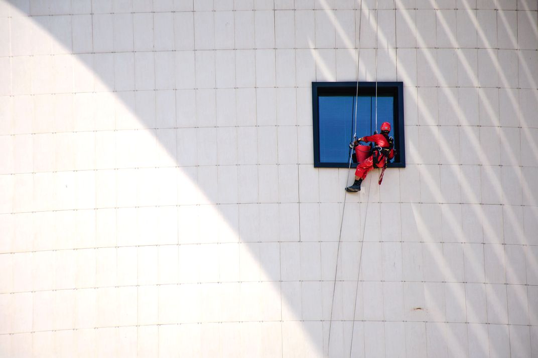 This man was cleaning this window.