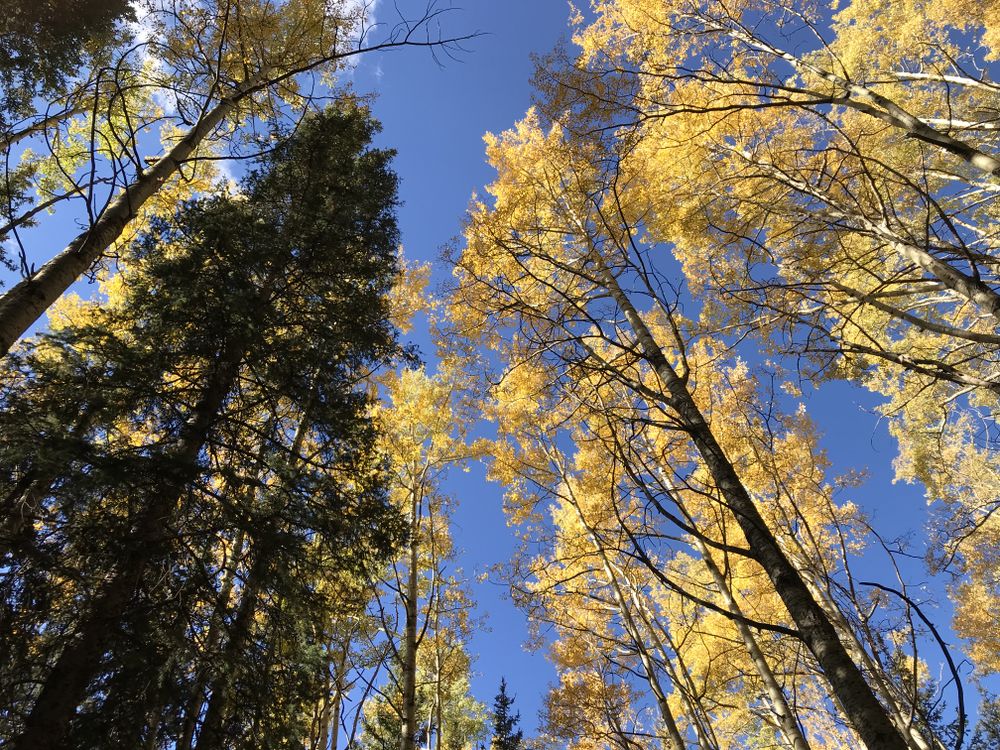 Looking to the sky at the majestic trees in the forest