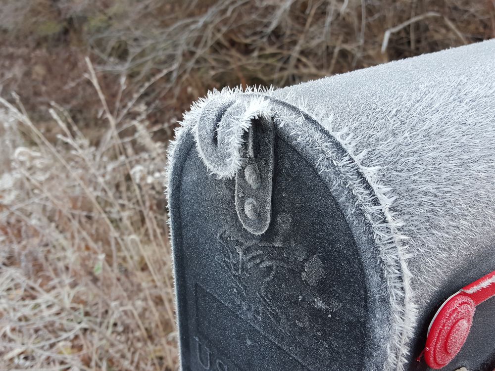 A cold morning in early winter provided a remarkable display of hoar frost on the mailbox.