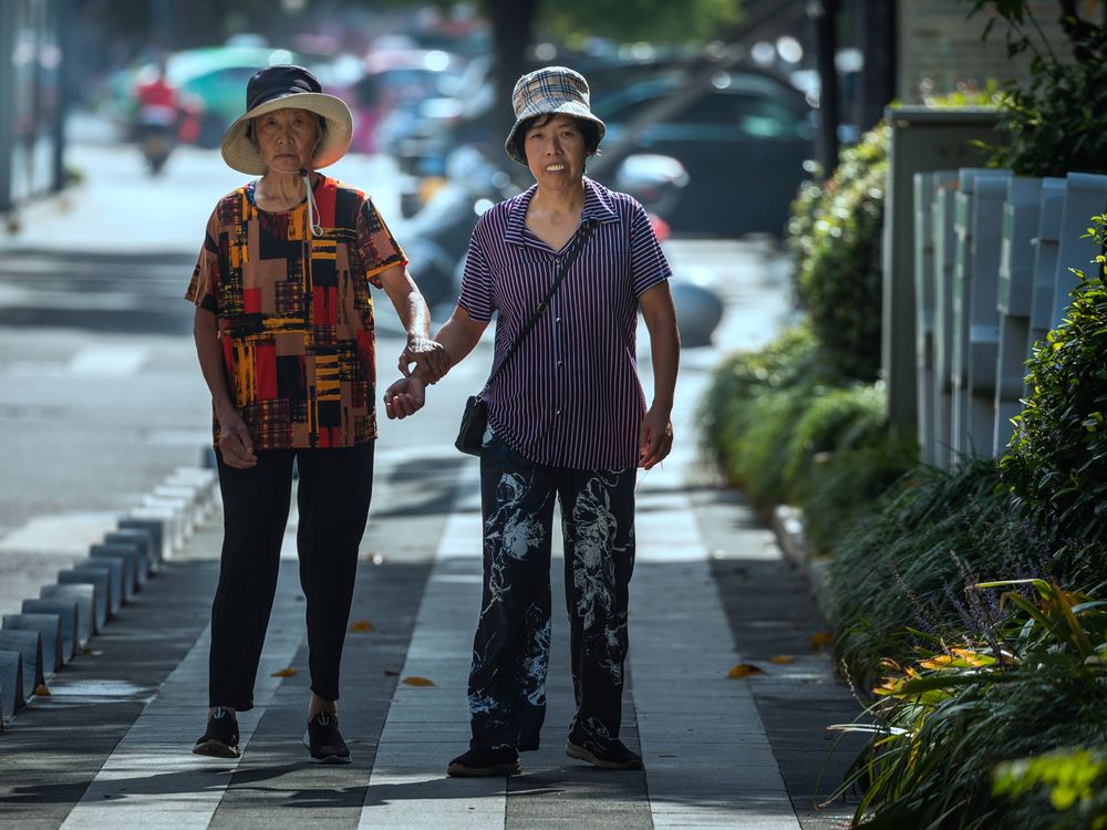 The daughter took her mother's hand and walked with her.