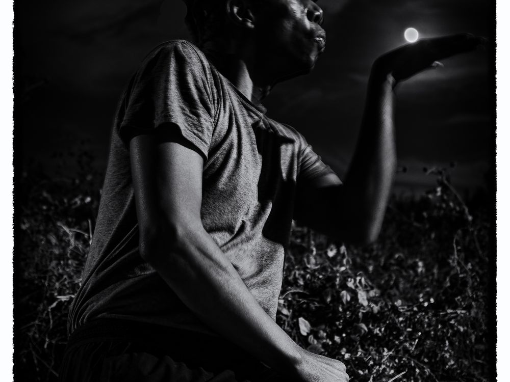 In this serene, surreal moment, Don appears to cradle the moon in his hand, as if holding a delicate breath upon its light. Set against the quiet backdrop of Memorial Park in Houston, TX this photograph captures a playful yet mystical connection between human and cosmos, reminding us of our small yet profound place in the universe.