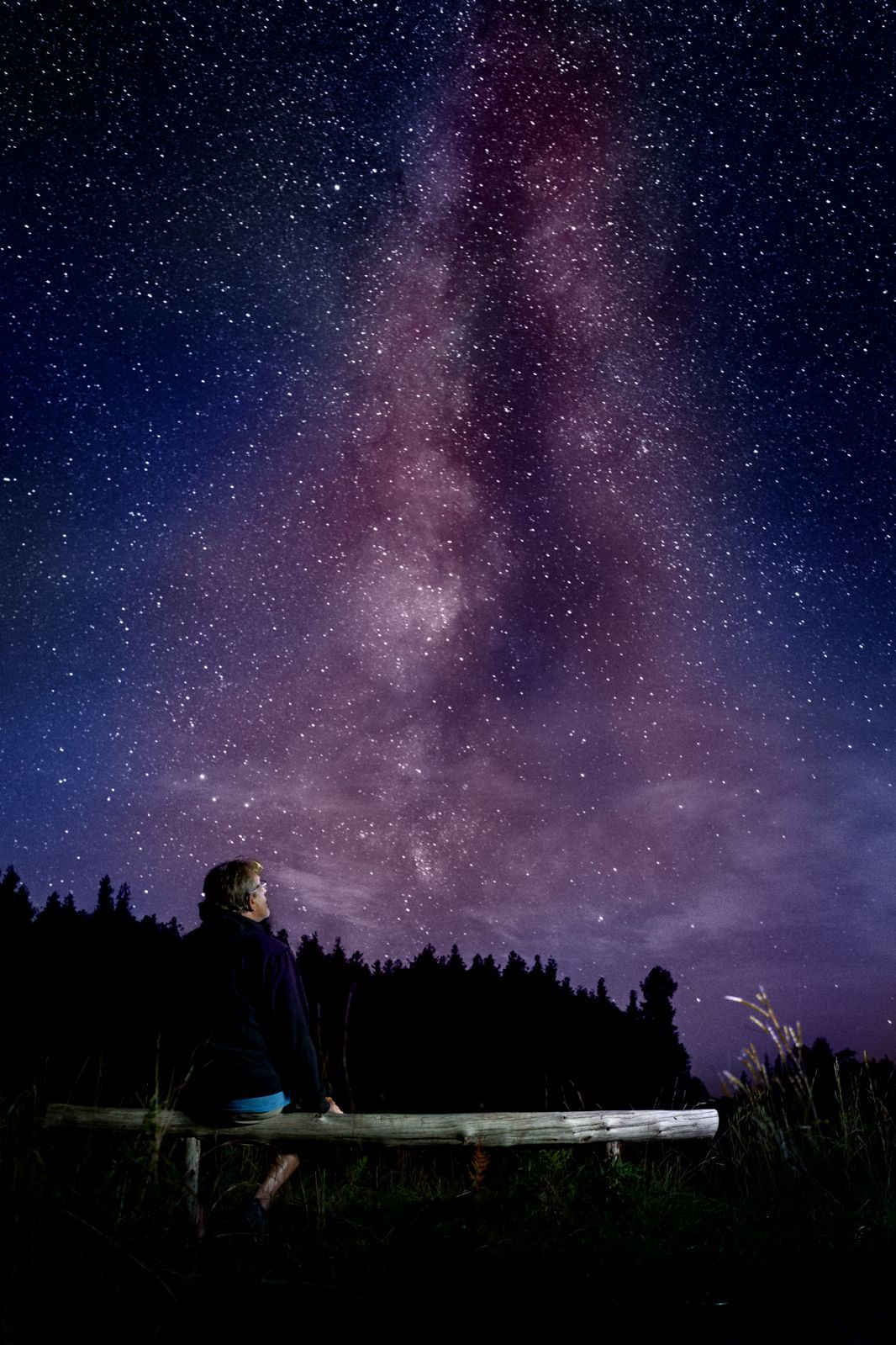 My nephew Ben Phillippe took this photo of me looking into the depths of the Milky Way late at night in front of our cabin along the Manistee River in Northern Michigan. He said to me, “Hold still “Uncle Mike” for 25 seconds, I think I got something.”