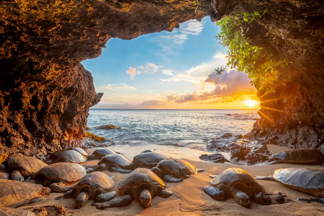 I set out to shoot sunset on a short trip to Maui. A good friend of mine knew of this special place where the turtle come up into a cave to rest. It was quite difficult to get to, we had to walk through the water along a cliff side, the tide was rising so it wasn't very easy. We walked for about 45 minutes along the slippery coast line until we spots a few turtles. We followed them and they led us to this cave where we thought it was a bunch of rocks at first only to realize it was a ton of turtles! We quickly found a spot that was un occupied and set up for sunset. We sat in the cave for about 3 hours! The tide was rising which was a little alarming and scary for our camera gear at times. We stayed all the way until the sun went down, in that 3 hours of waiting we were almost completely blocked in by turtles as more and more started to show up! It was a great shooting day, but the walk back to the car in the dark was quite the adventure.