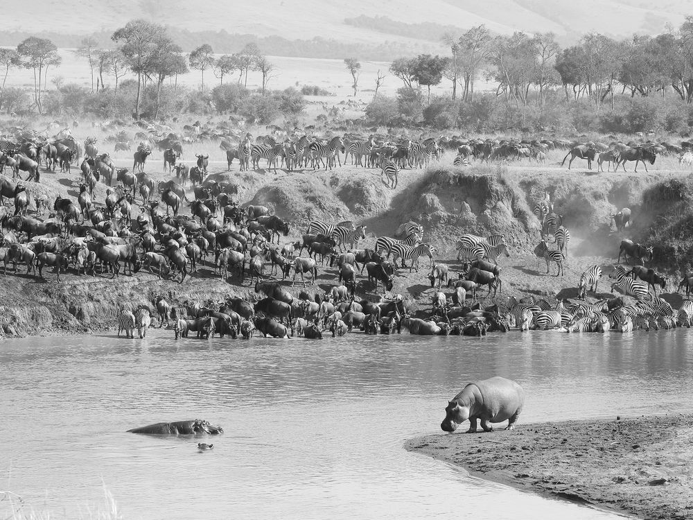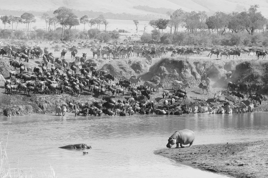 In the hot day of Maasai Mara National Reserve,every life gather around the river for water.