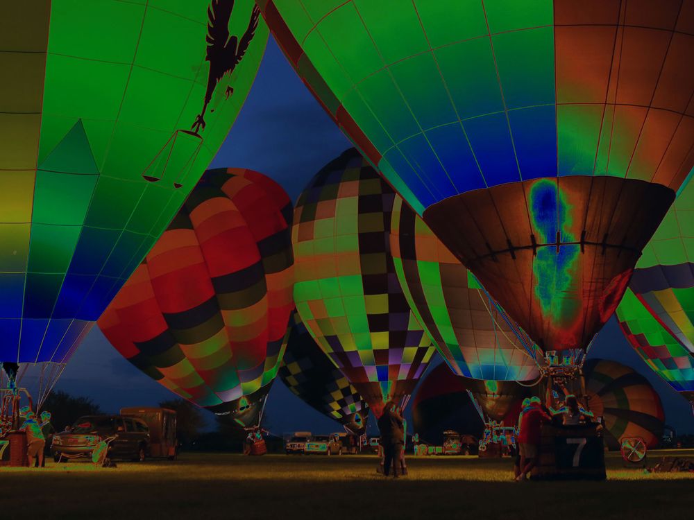 Hot Air Balloons light up the night at Middletown Regional Airport/Hook Field. On Friday ,July 12, 2013. On the first day of the Three day Ohio Challenge Hot Air Balloon and Skydiving Festival In Middletown,Ohio During the Balloon Glow show.