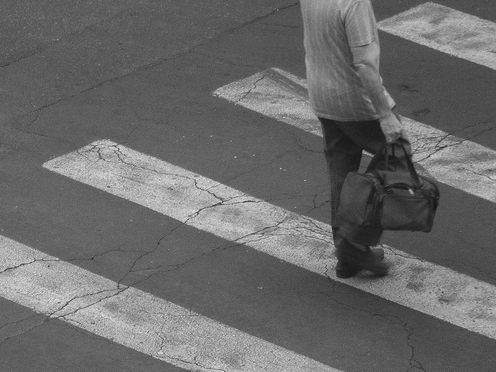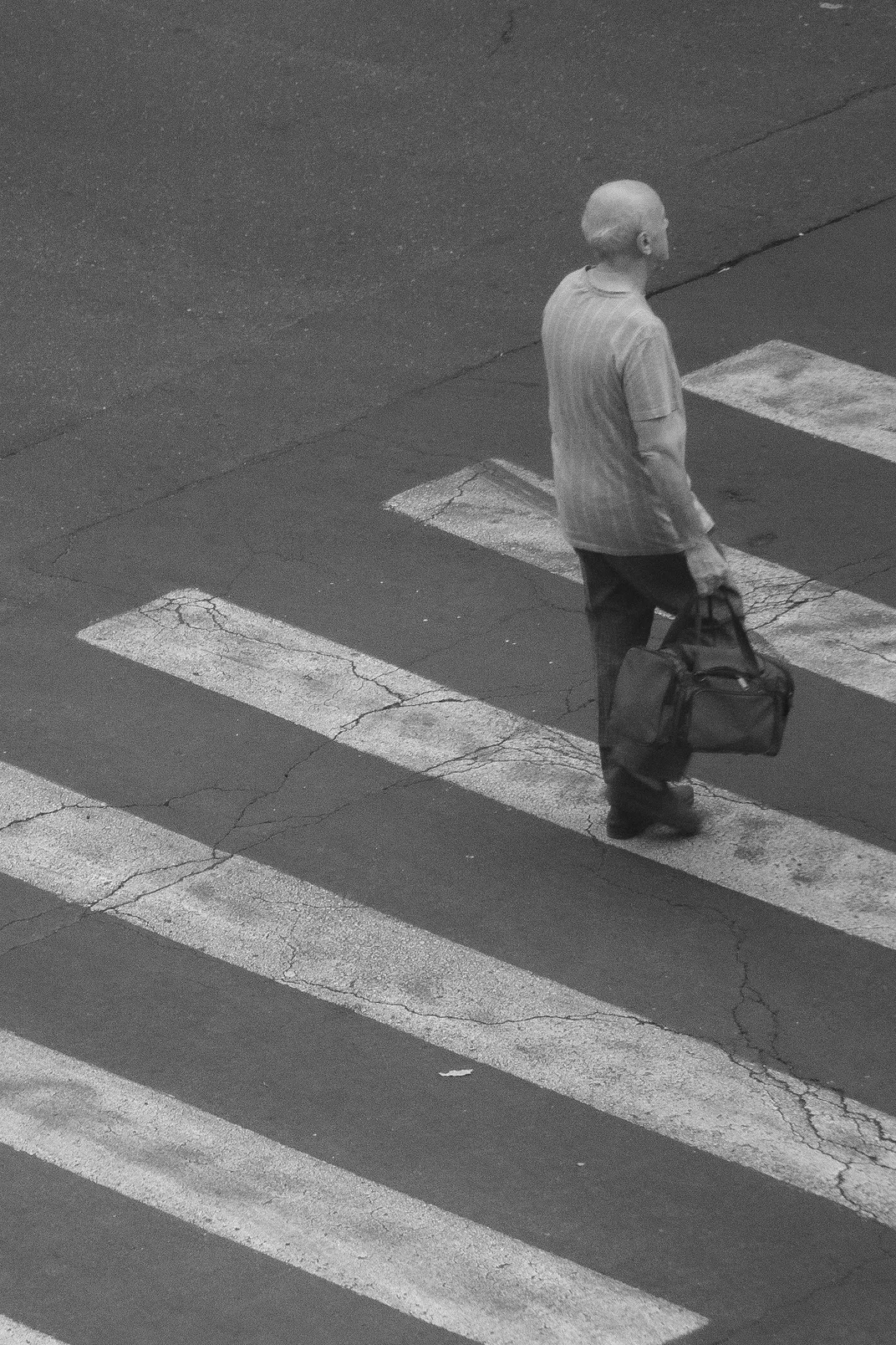 A man who waited for the pedestrian light to turn green in the middle of a quiet street. He walked slowly and made his way. There was a beautiful order in his movements, and I wondered if he was going to work that morning on a holiday or coming back from a night shift?!