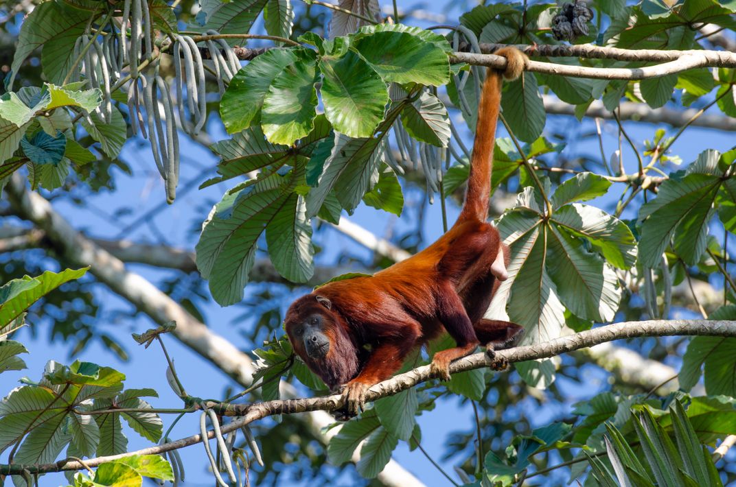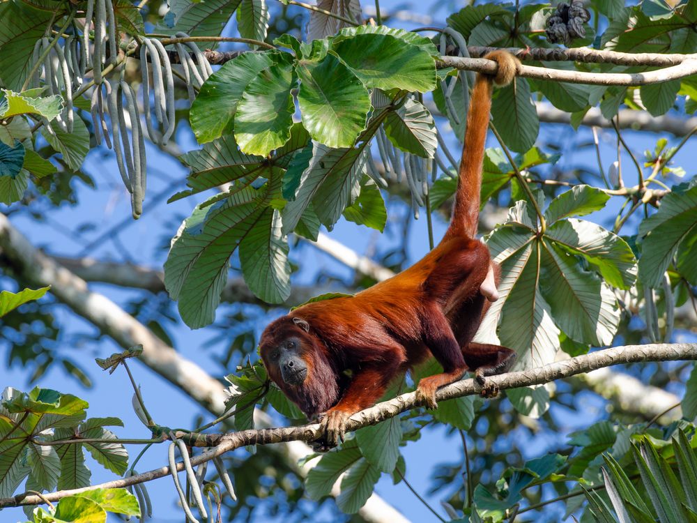 Howler monkeys make unmistakable howling sounds in the early morning, but not during the day. This one was part of a group that was passing by the rainforest station where I was having lunch, looking for fruit trees. He stopped, seemingly interested in those of us watching him for a few minutes before continuing on his way.
