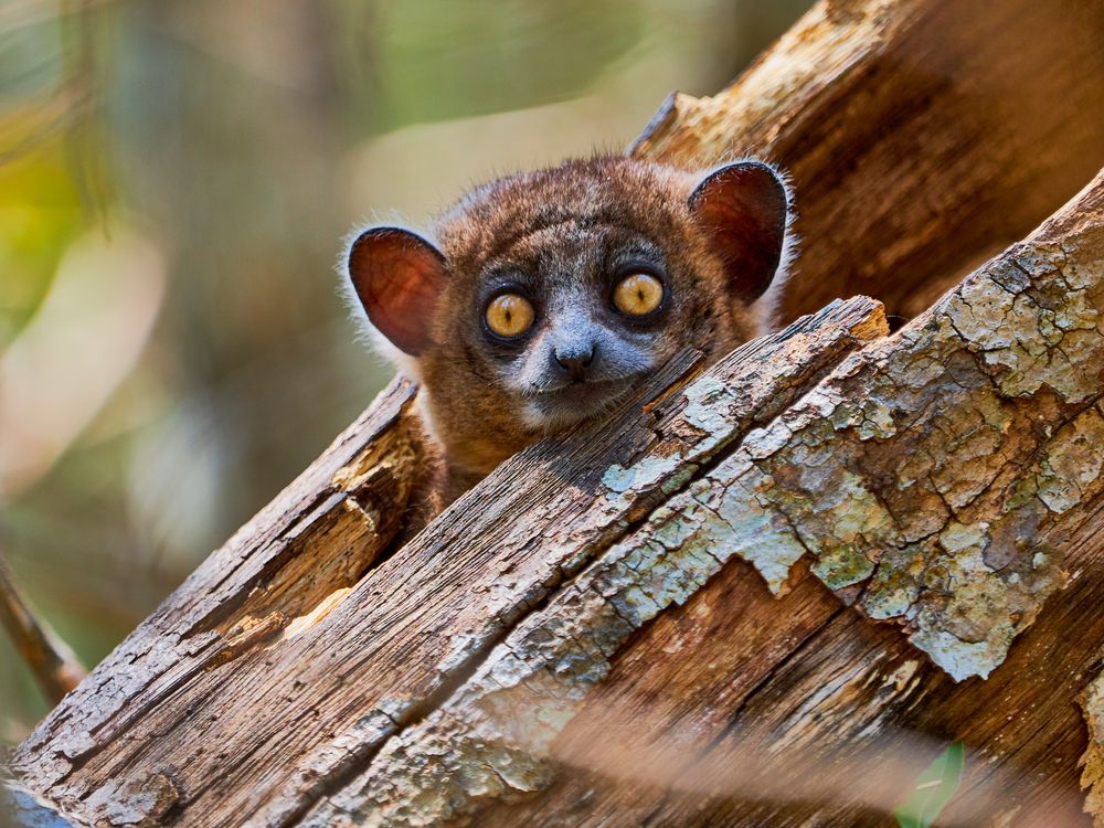 Hubbard's Sportive Lemurs are nocturnal. This one curiously peeked out of its hollow tree trunk bedroom when we made a bit of noise. We spotted it from a distance at Zombitse National Park in Madagascar.