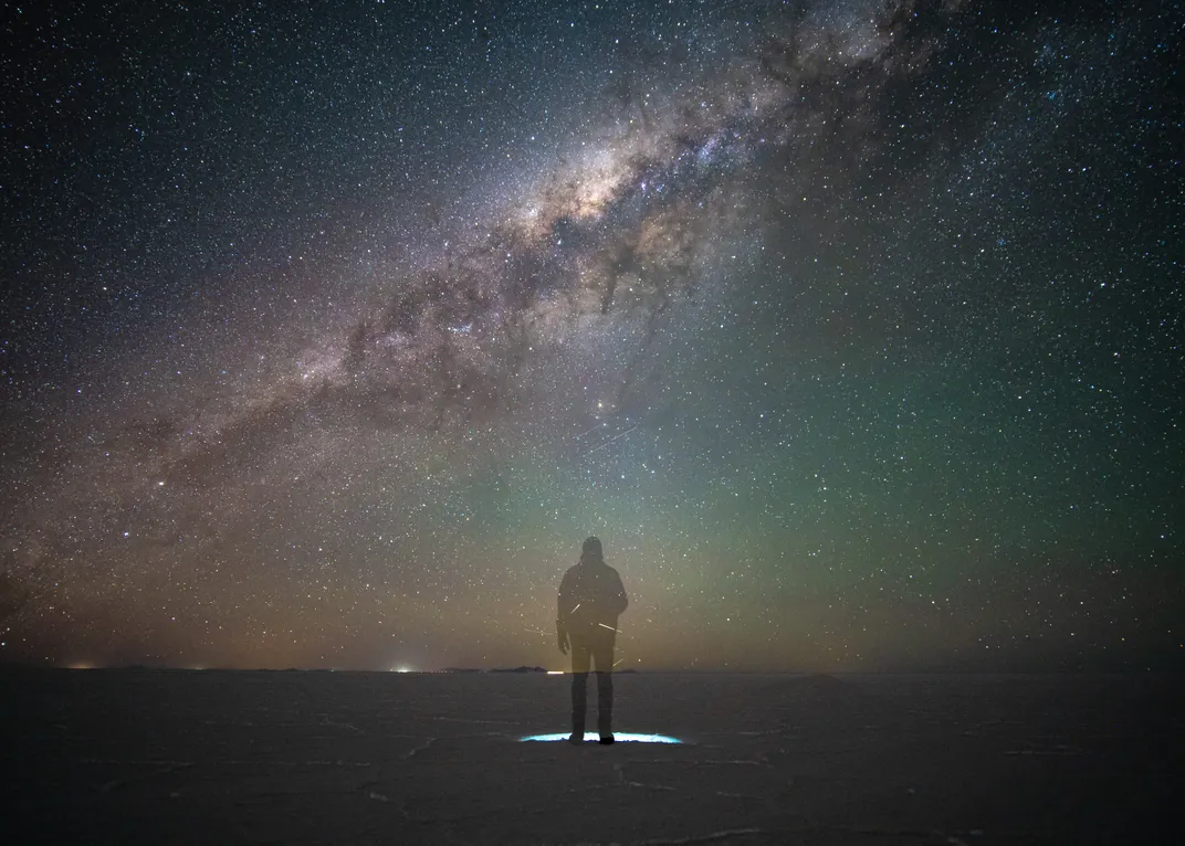 What a memorie! I like to take astrophographie like a complete newbie, but I'm always amazed by look up in the sky and see the stars. The first time that someone Saturn in a telescope was like, it's real, Saturn is like the books, with a ring around, it was magical. Since this time, when I have the chance to travel, I always try to find a place (no light pollutions), find the moment (no moon), and hope no clouds... Uyuni desert in Bolivia is the perfect place for it. Here is my son in front of the universe and the milkyway