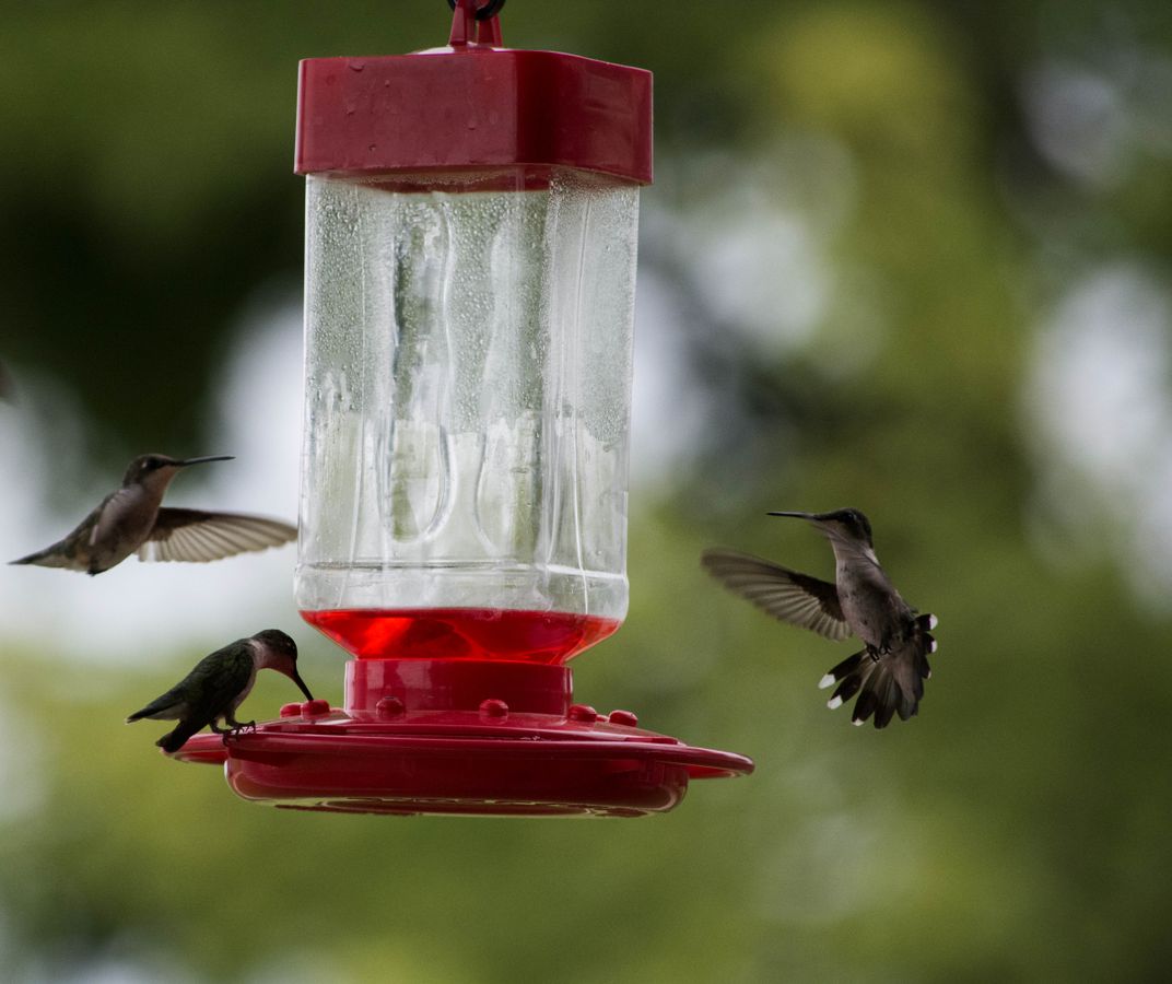 This feeder would have up 8 hummingbirds flying around at any given time.