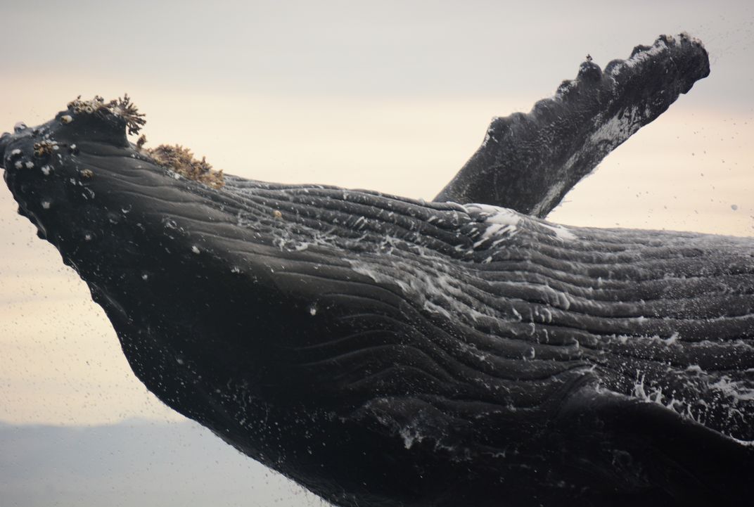 This photo captured a friendly humpback whale that chose to breach mere feet from our 12 foot vessel on the ocean waters off Avila Beach, California. We were so in awe of the experience that thrill outweighed fear many times over. The size, power, grace and gentle nature of this beautiful whale was unforgettable. Being the only ship on the water that early in the day we felt blessed to have this private encounter.
