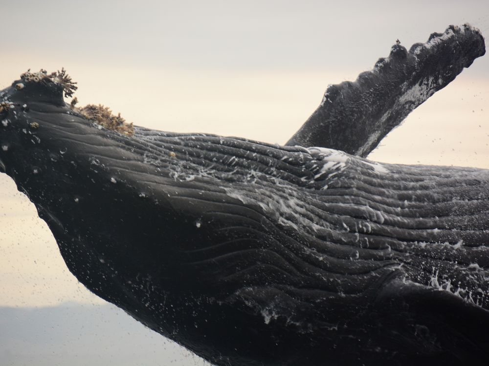 Humpback breach aside our boat in the early morning hours of September 11th in Avila Beach, CA.