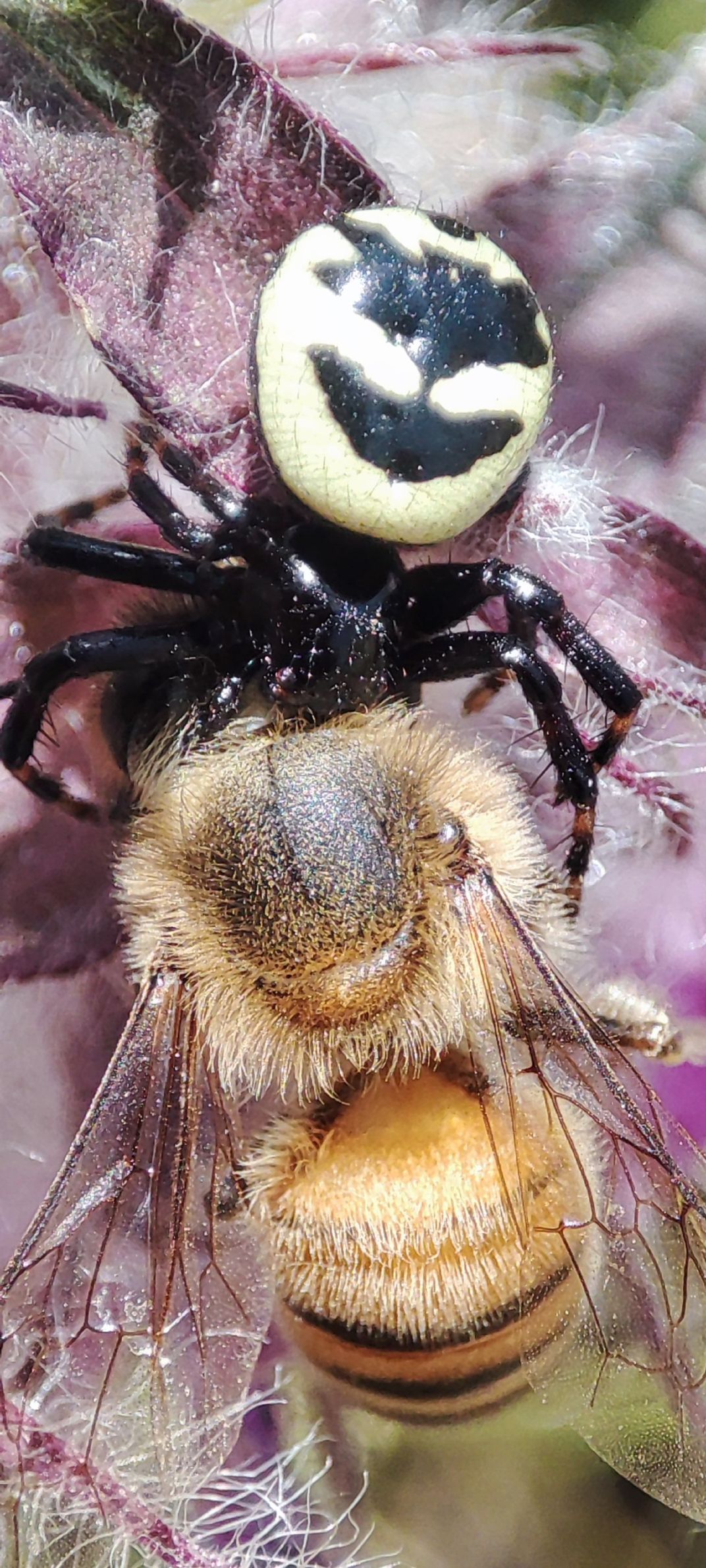 In an interesting incident, I witnessed the moment a bee was hunted by a spider.