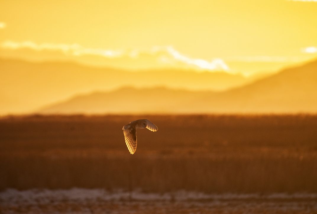 When the temperatures are low enough, barn owls will hunt the fields in the late afternoon and early mornings to be able to pierce the frozen ground for mice. This is one of those lucky days.