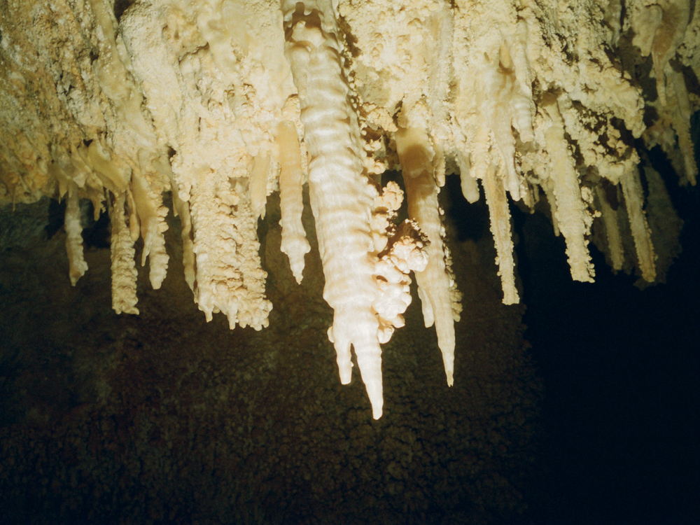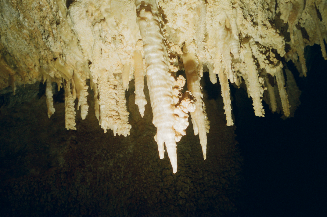 Stalactites in Hurt-so-Good Cave near Glenwood Springs, Co. Covered in large botaroids.