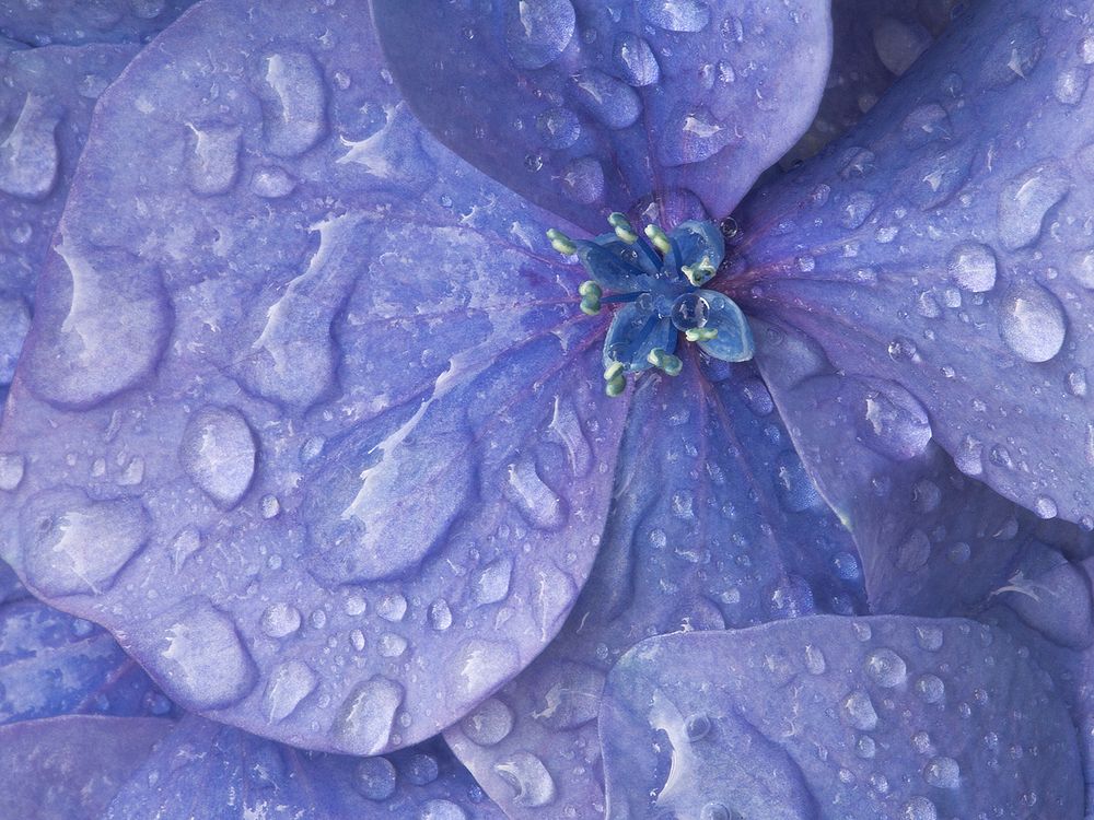 Beautiful waterdrops on a hydrangea blossom after a rain