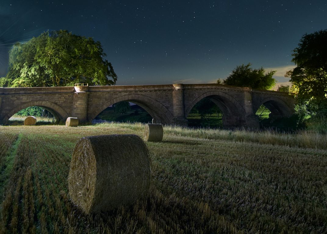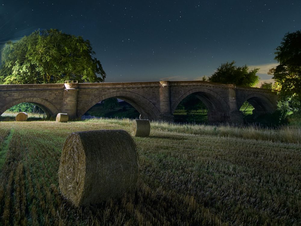 Having just bought a new wide angle f2 lens. I headed out on a clear night to a bridge which is local to me to do some night photography. The bales of hay made for a compelling foreground with the bridge and night sky in the background.