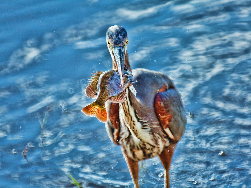 I went to my back yard for a relaxing moment and I saw the Great Blue Heron in the hunt so I got my gear and wait for the decisive moment
