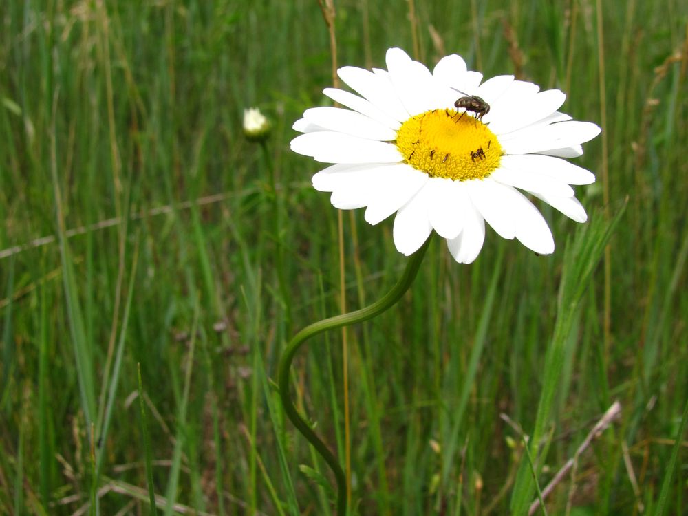 I found this crazy daisy in my backyard. I don't know why it grew curved like that, but it made a good picture.
