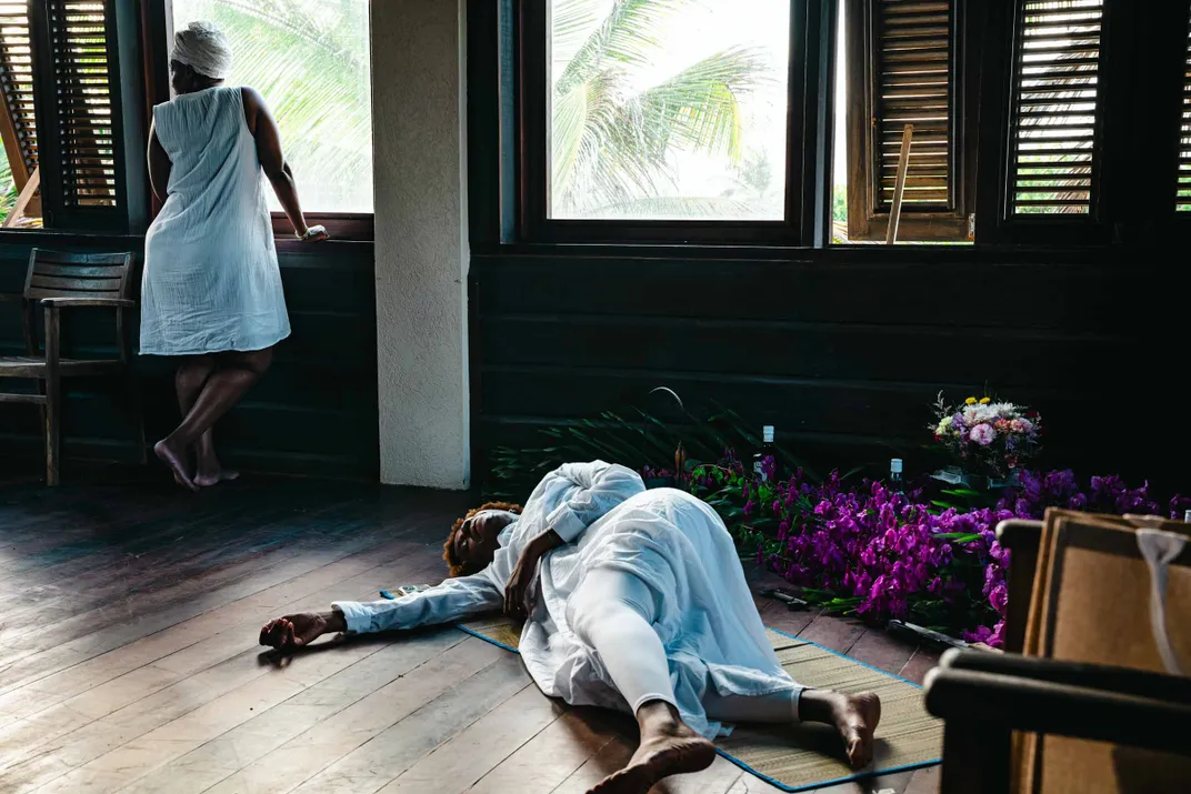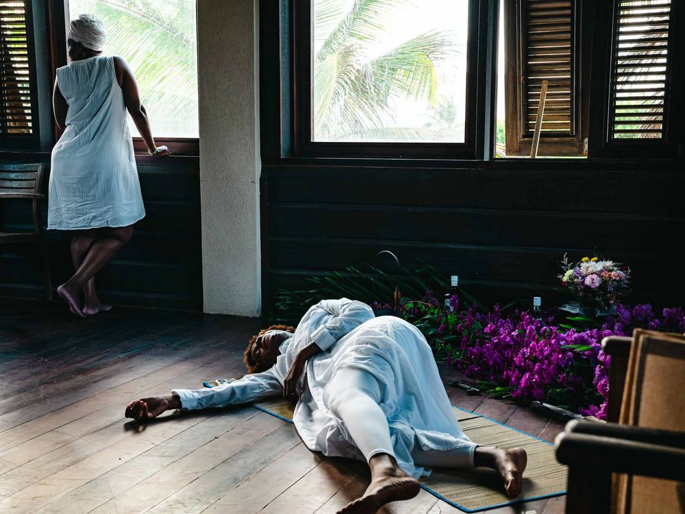 This image was made at an all women's ancestral veneration retreat in Barbados. The woman on the floor is receiving messages from the ancestral realm.