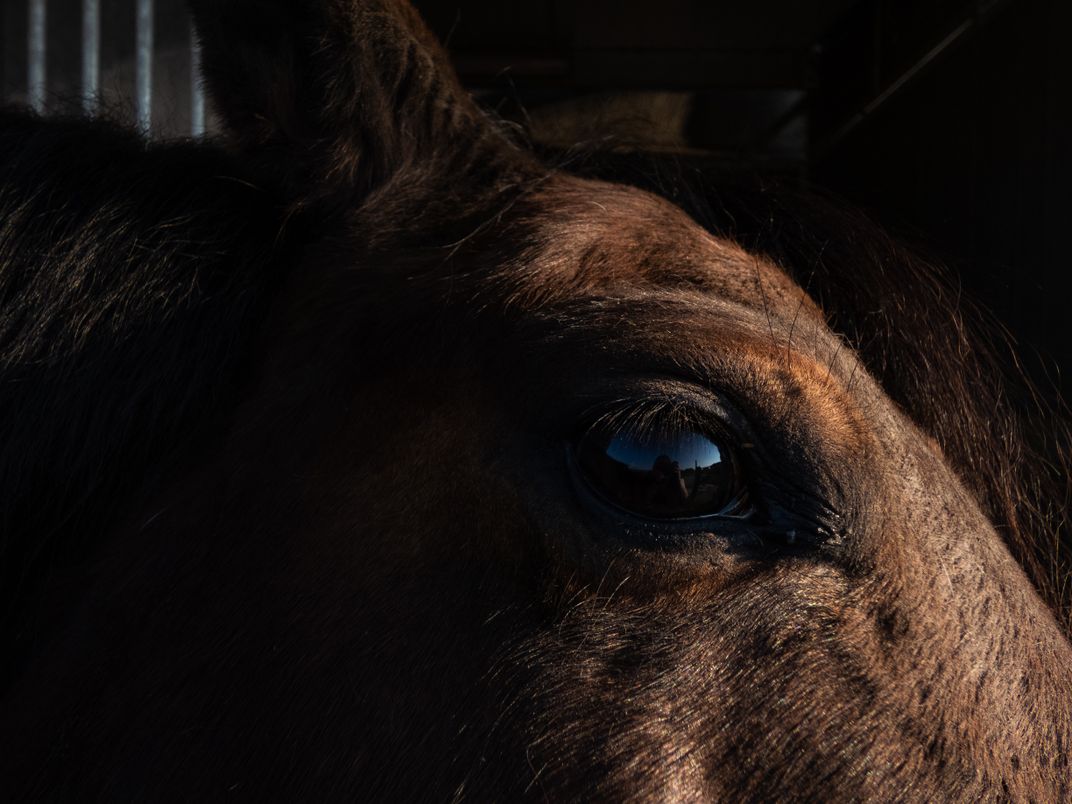 This is a photo of my horse Baby. I only noticed afterwards that you can see my reflection very clearly in her eye, together with the blue sky.