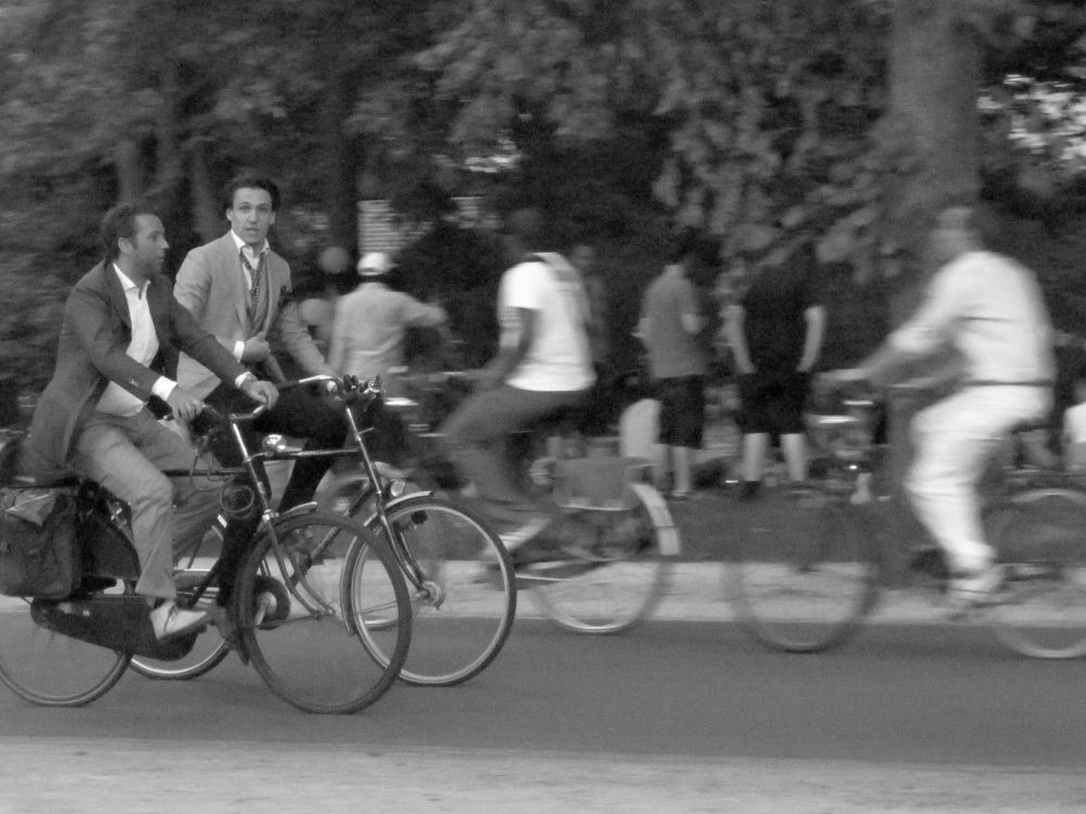 I was in Vondelpark in Amsterdam and I decided to photograph the bikers because that is one of the things the Netherlands is known for. This was my favorite one: 2 businessmen having a discussion as they biked around just like everyone else.
