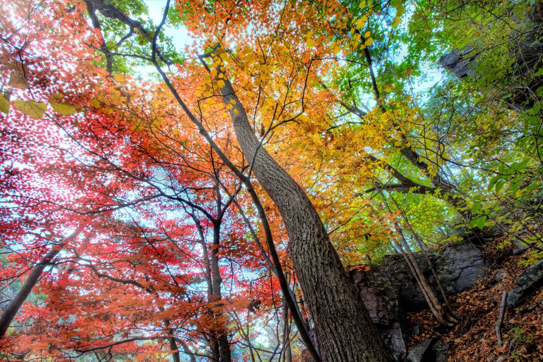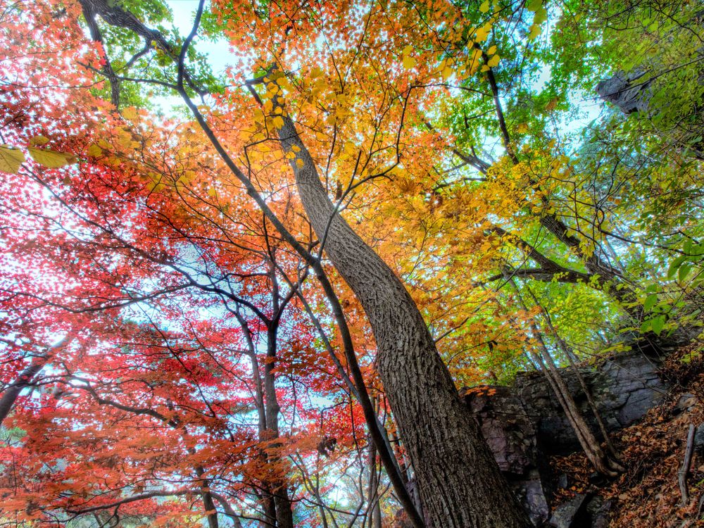 I went hiking through the mountains on the coast of South Korea this Fall. Amongst all of beautiful colors I happened to find this cluster of trees forming a near perfect cascade of fall colors.