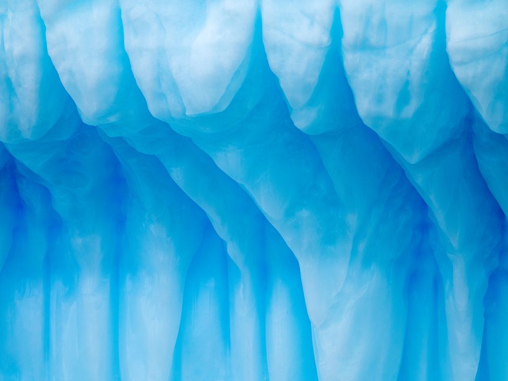 Patterns on the lower part of a tilted tabular iceberg. Antarctica.