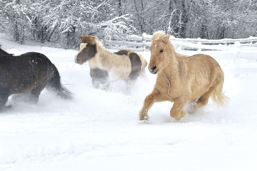 Through the practiced lens of Grand Rapids, Michigan-based photographer Dave Thompson, captures Icelandic horses trotting through a snow-covered Michigan field become a breathtaking symphony of movement and light. Dave's hallmark is his ability to harness natural elements: the brilliant snow, atmospheric haze, and kinetic motion and shape them into a composition that feels both wild and intentional. In this image, his fast shutter work freezes the horses mid-stride with crystalline clarity, while the capture of the sharp winter light helps the viewer feel the day's frigid air. This photograph speaks to his mastery of timing and his instinct for capturing animals in their most authentic, unguarded beauty.