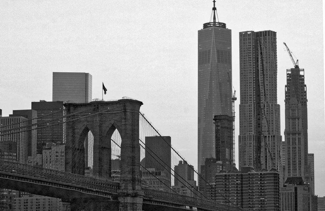 NEW YORK CITY ICONS PHOTOGRAPHED FROM THE EAST SIDE OF THE BROOKLYN BRIDGE