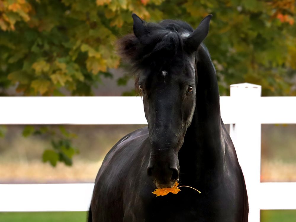 My horse picked up a leaf during our photoshoot and completed the composition.
